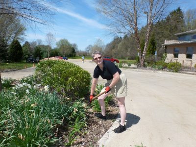 We need people to clean out dead wood, mulch the beds and the path to Burbank Road, and the Memorial Garden. We will repair the fence on the south side of the drive. We need to divide some perennials and replant them, and prune and shape the shrubs. We need to prepare the ground for planting trees and shrubs at the east end of the parking lot where trees had to be removed.
